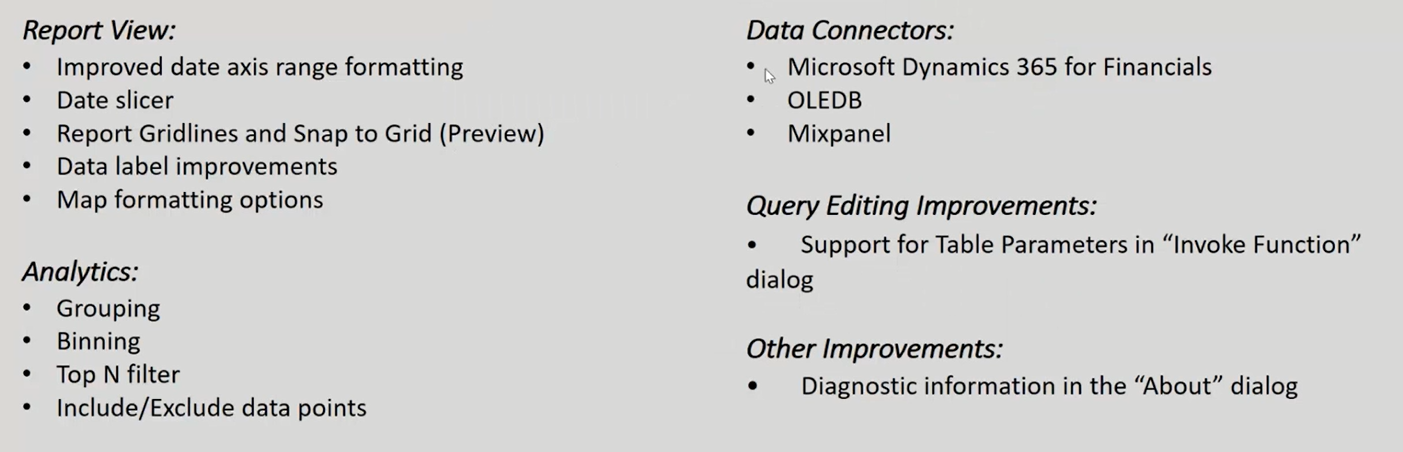 - The date axis range and date slicer (built into standard slicer) will both be very useful as well.
