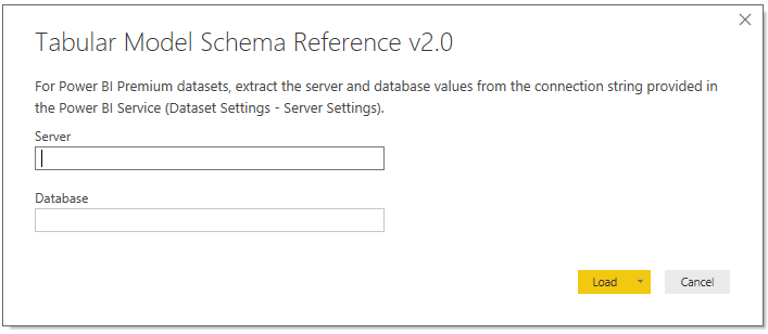 Just click ‘Load’ or hit ‘Enter’ on the keyboard once you’ve provided the two required parameter values. Depending on the source, you may be prompted to sign in. For example, with Azure Analysis Services, you’ll need to sign in with your Microsoft account as Azure AS uses Azure Active Directory for authentication. Once authenticated, the queries themselves are quick to execute as they’re only retrieving small metadata tables.