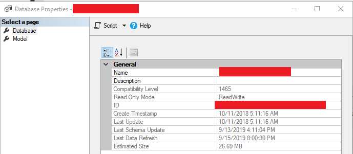 As just one simple example, after using a registered server to connect to a Power BI Premium workspace, you can right-click a database (a Power BI dataset) to open the Properties page per the following image: